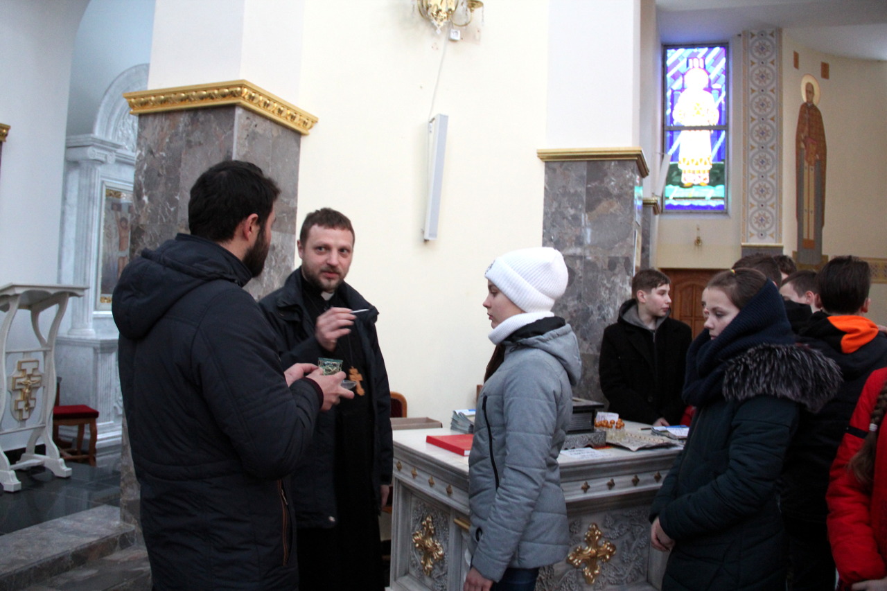 Опісля школярі з м. Лисичанськ зустрілися з вихованками колегіуму для дівчат «Знамення». В часі зустрічі усі разом роздумували над темою «Покликання», а на завершення переглянули повчальний фільм.