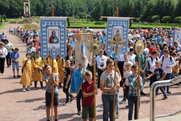 На подіумі перед Собором усі разом взяли участь в Архиєрейській Святій Літургії, яку очолив архиєпископ і митрополит Тернопільсько-Зборівський Василій (Семенюк) у співслужінні адміністратора Собору Зарваницької Матері Божої о. м. Дмитра Квича та багатьох священників. По завершенні Богослужіння митрополит привітав усіх дітей та молодь, які так чисельно прибули на прощу, та здійснив урочисту посвяту, прийняття нових членів спільнот.