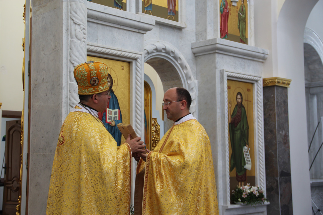 Після Богослужіння о. Дмитро від імені адміністрації та усіх священиків Марійського духовного центру теплими словами привітав іменника зі святом, побажав постійної опіки його Небесного покровителя та подарував ікону Зарваницької Матері Божої.