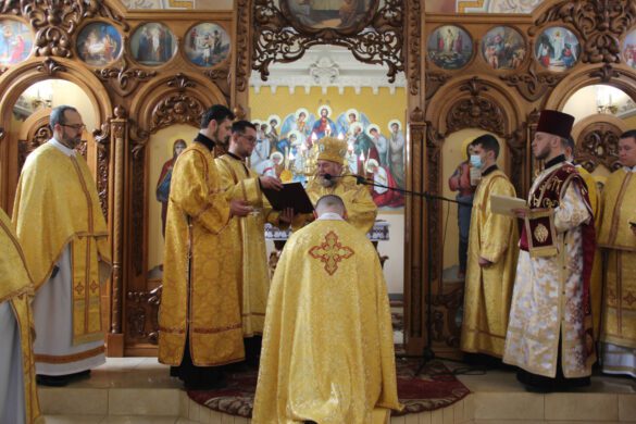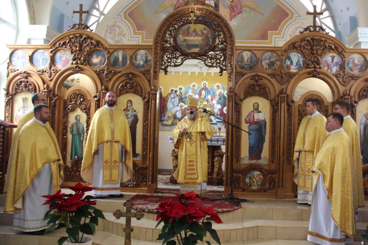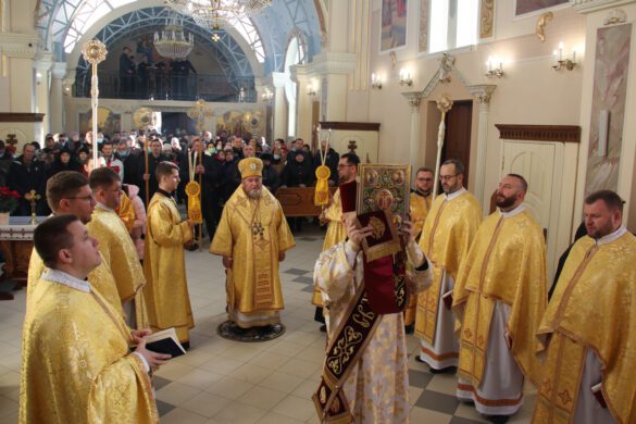 Архиєрею співслужили ректор Марійського духовного центру о. м. Володимир Фірман, ректор Тернопільської вищої духовної семінарії ім. патріарха Йосифа Сліпого о. Іван Римар, настоятель української громади м. Болонья і декан Флорентійсько-Болонського деканату Апостольського екзархату для українців католиків візантійського обряду (Італія) о. Михайло Бойко, настоятель храму св. Василія Великого м. Тернополя о. Василь Савків, сотрудник базиліки Зарваницької Матері Божої о. Андрій Шалай, сотрудник храму Положення Чесної ризи Пресвятої Богородиці м. Тернополя о. Андрій Олійников, протодиякон Володимир Вінтонюк.