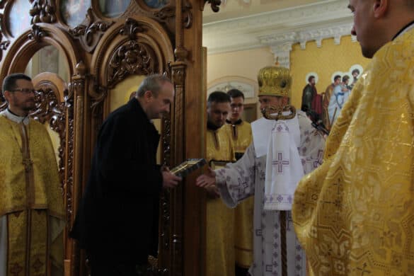 По завершенню Богослужіння владика Теодор подякував працівникам житлово-комунальних господарств. «Сфера комунального господарства завжди була є вагомою і стратегічною в житті суспільства. Сьогодні ви є однією з головних сфер, яка забезпечує комфортні умови життя тисячам людей. Це – тепло світло, вода в будинках, школах, садочках, лікарнях, а ще – благоустрій та краса міст і сіл. Ви проявили неабияку мужність та високий професіоналізм, ліквідуючи наслідки енергетичного терору, який росія влаштувала цієї зими», – зазначив архиєрей. На згадку про це паломництво владика вручив пам’ятні ікони голові Тернопільської обласної організації Профспілки працівників житлово-комунальних господарств Валерію Коссу, голові Львівської міської організації Профспілки працівників житлово-комунальних господарств Дарії Мамутович, заступнику директора департаменту – начальник управління житлово-комунального господарства та енергозбереження Тернопільської обласної військової адміністрації Софії Близнюк.