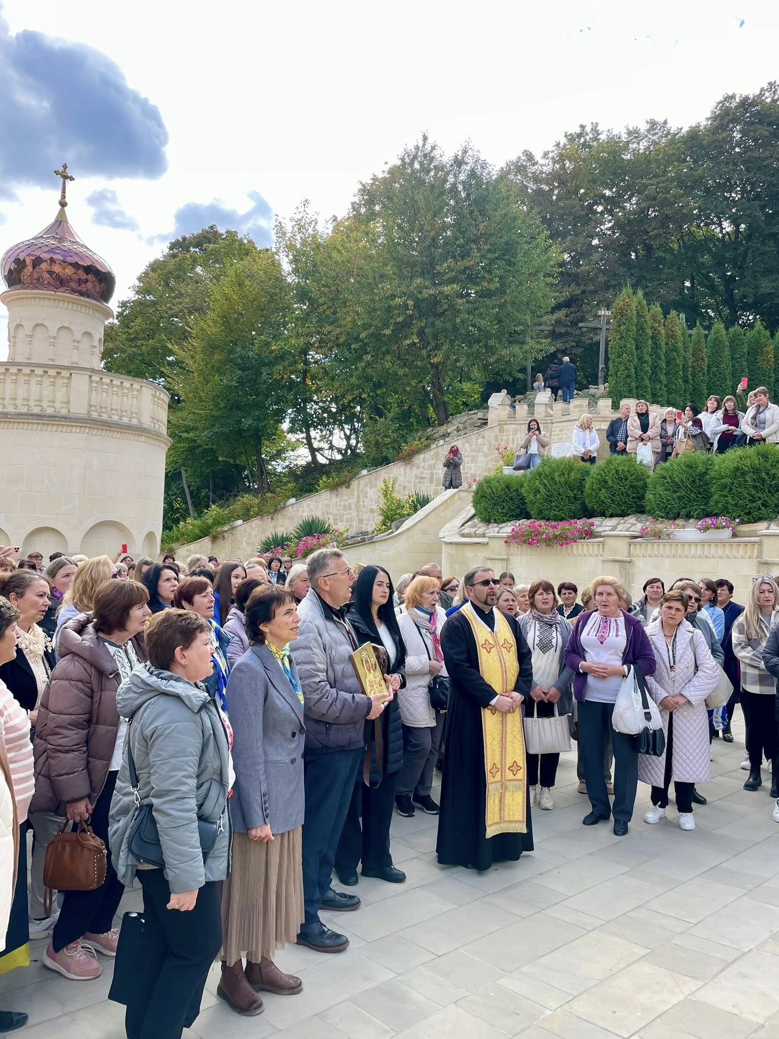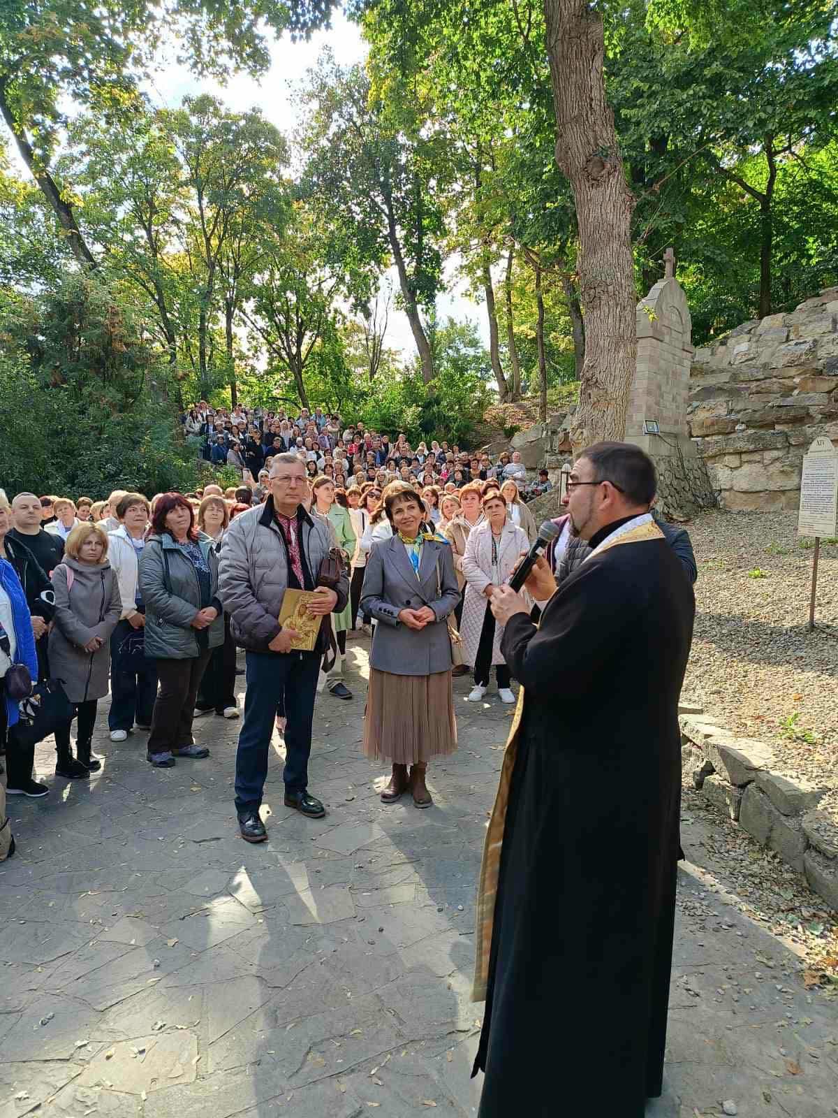 Паломництво продовжилося освяченням води у каплиці над чудотворним джерелом. Опісля відбулася молитва на Хресній дорозі за воїнами України, яку провів о. Микола Медюх. В Українському Єрусалимі присутні просили у Господа справедливого миру для України, усі разом виконали духовний гімн «Боже Великий Єдиний».